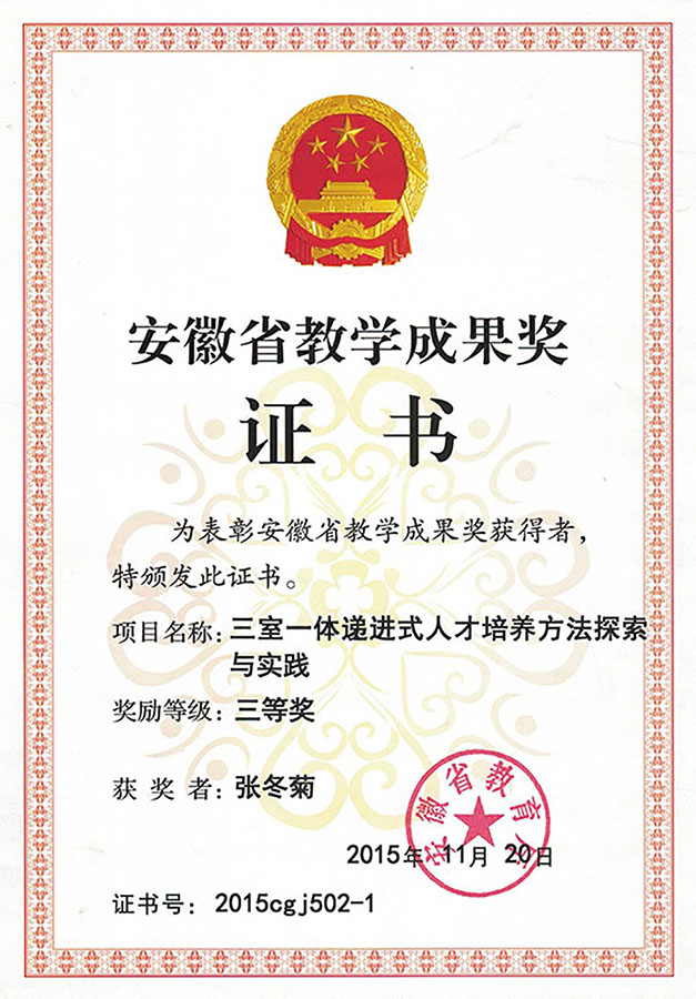 《三室一體遞進(jìn)式人才培養(yǎng)方法探索與實(shí)踐》教學(xué)成果 三等獎(jiǎng) 張冬菊