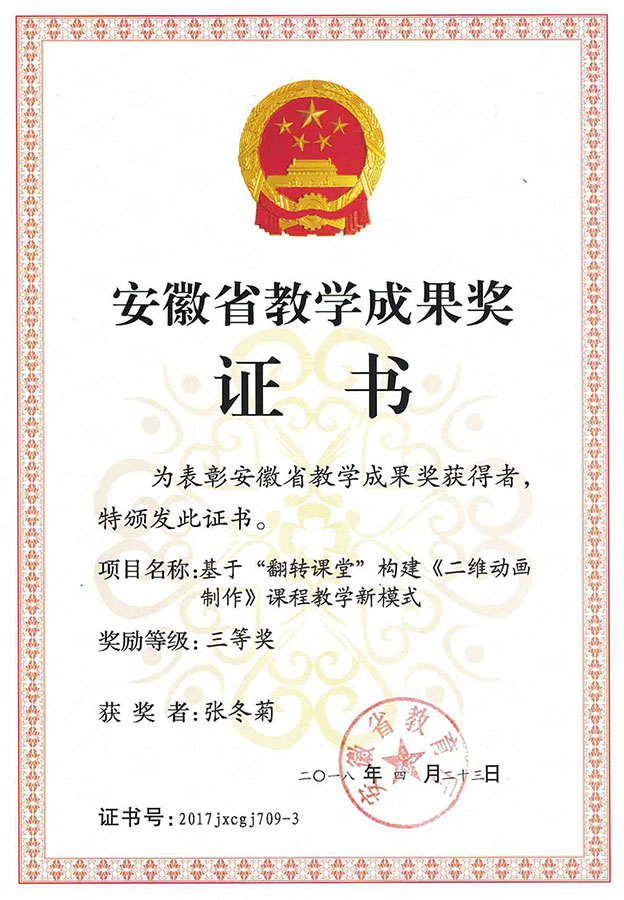 “翻轉(zhuǎn)課堂”構(gòu)建《二維動(dòng)畫制作》課程教學(xué)新模式項(xiàng)目成果三等獎(jiǎng) 張冬菊
