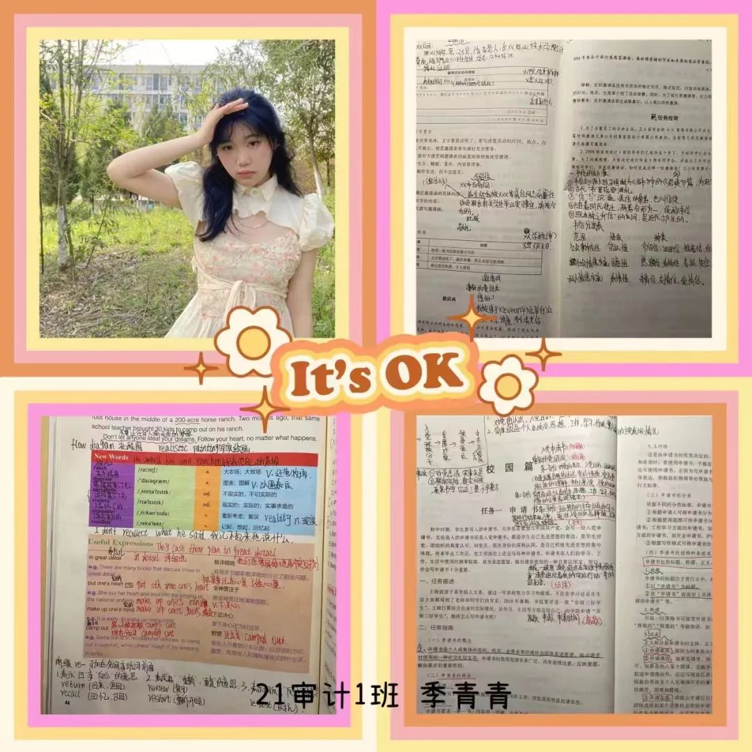 菁菁校園,微微涼風(fēng) 一份青春,活力生活 一份筆記,記錄生活 一份好的課堂筆記 不僅是我們學(xué)生課后的好幫手 也是體現(xiàn)一個(gè)學(xué)生基本學(xué)習(xí)素養(yǎng) 讓我們來看看同學(xué)們的優(yōu)秀筆記吧! 將知識(shí)的海洋提煉成精華的水滴,把游移的提案放進(jìn)文字的田野,彈指間繪成大學(xué)最精彩的風(fēng)景線,字格展方寸,筆記顯才華。希望同學(xué)們都能養(yǎng)成課堂做筆記的習(xí)慣,共建我系良好的學(xué)習(xí)精神風(fēng)貌。