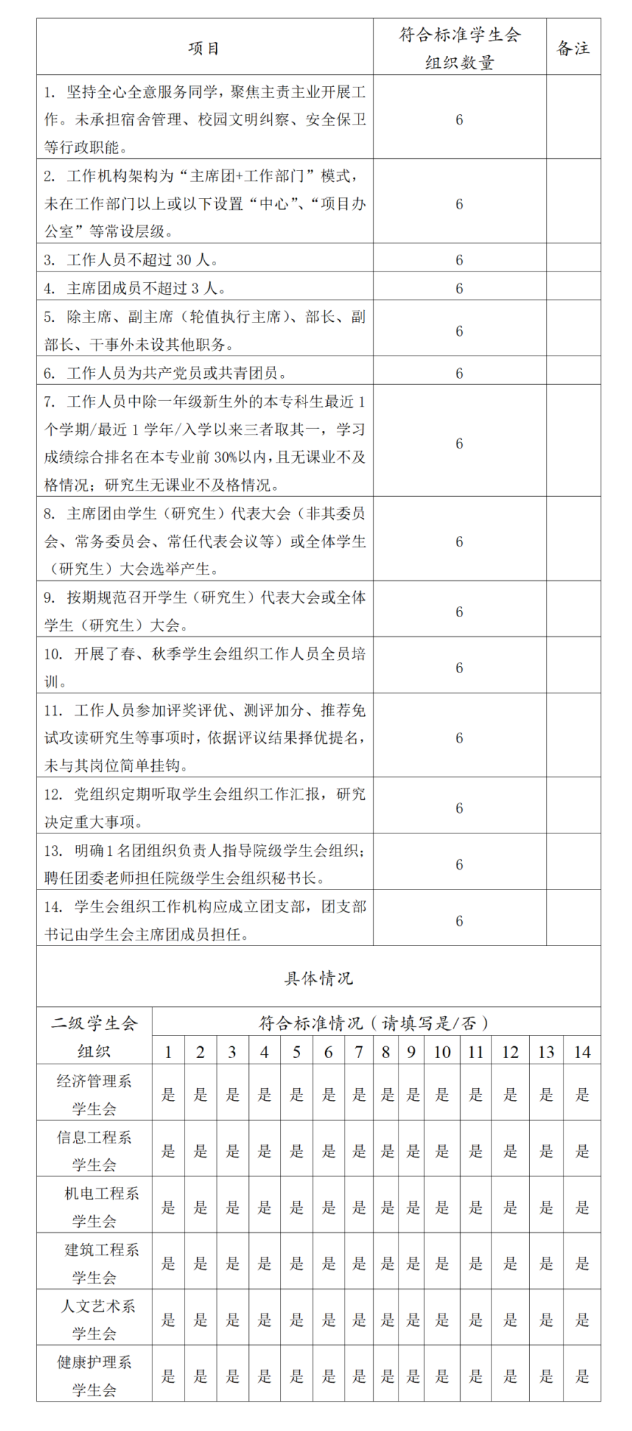(二)二級(jí)學(xué)生會(huì)組織(含二級(jí)院系、書院、分校區(qū)等學(xué)生會(huì)、研究生會(huì))改革自評(píng)表