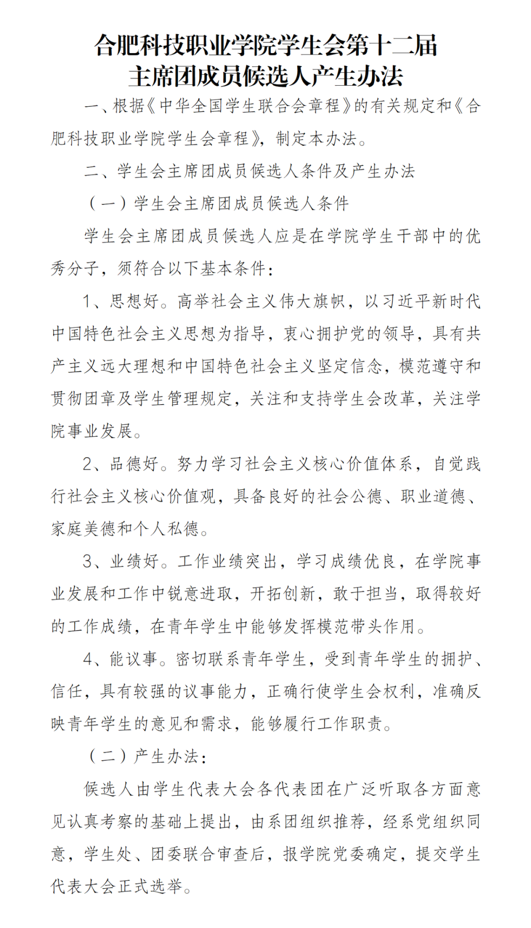五、校級(jí)組織主席團(tuán)成員候選人產(chǎn)生辦法
