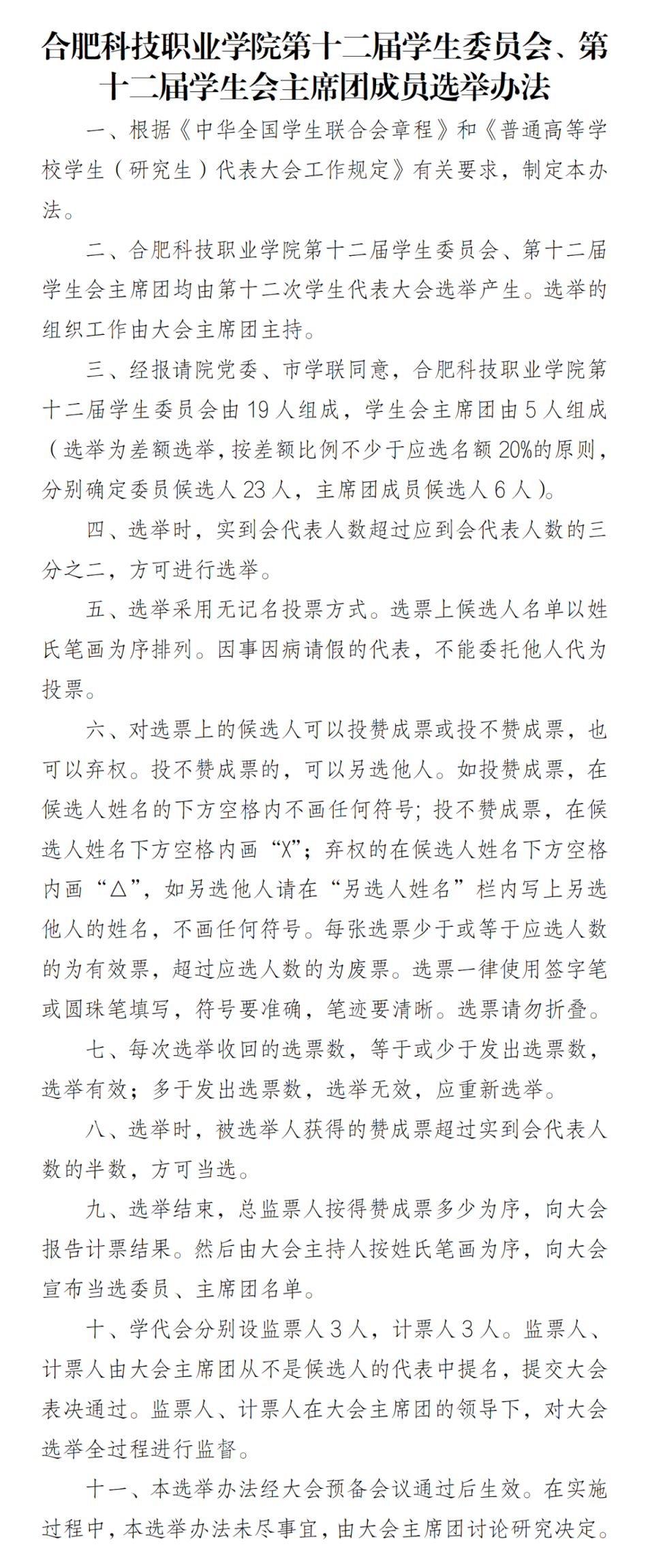 二、《合肥科技職業(yè)學(xué)院學(xué)生會(huì)章程》